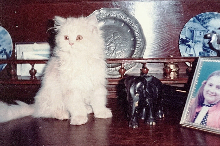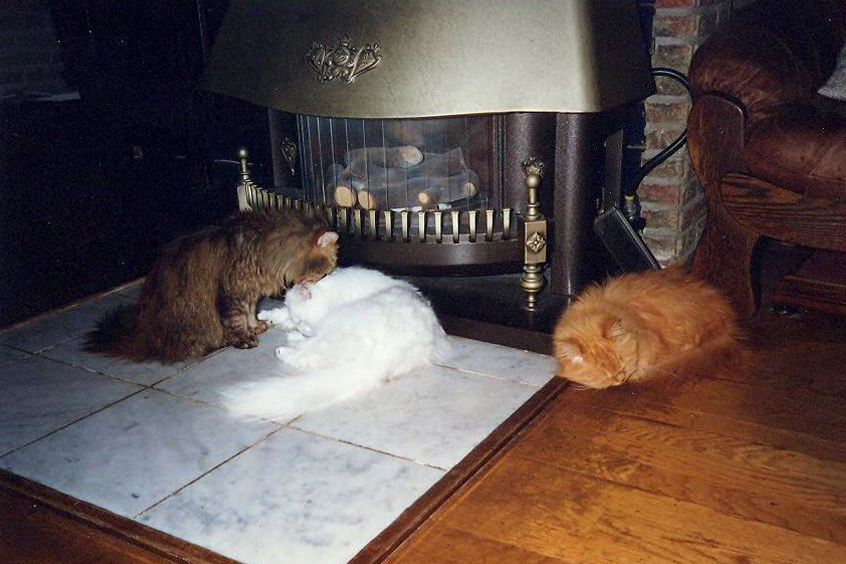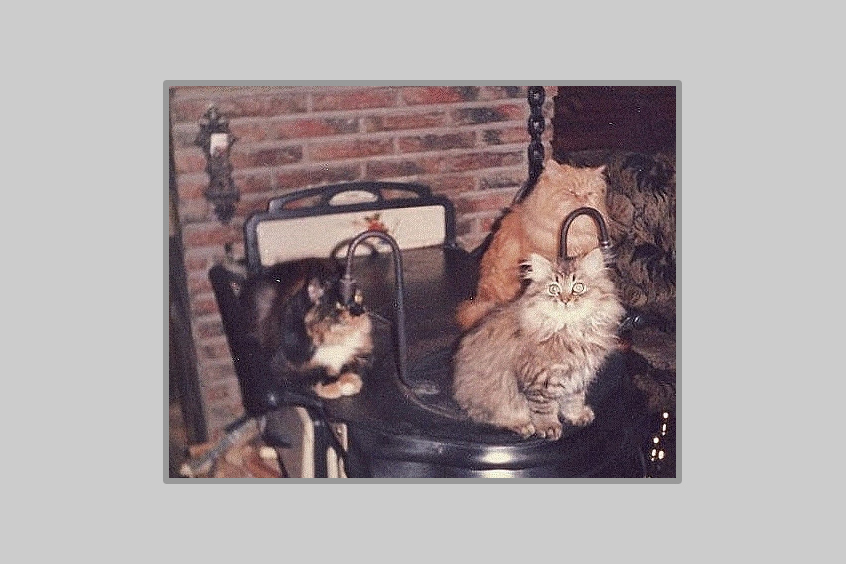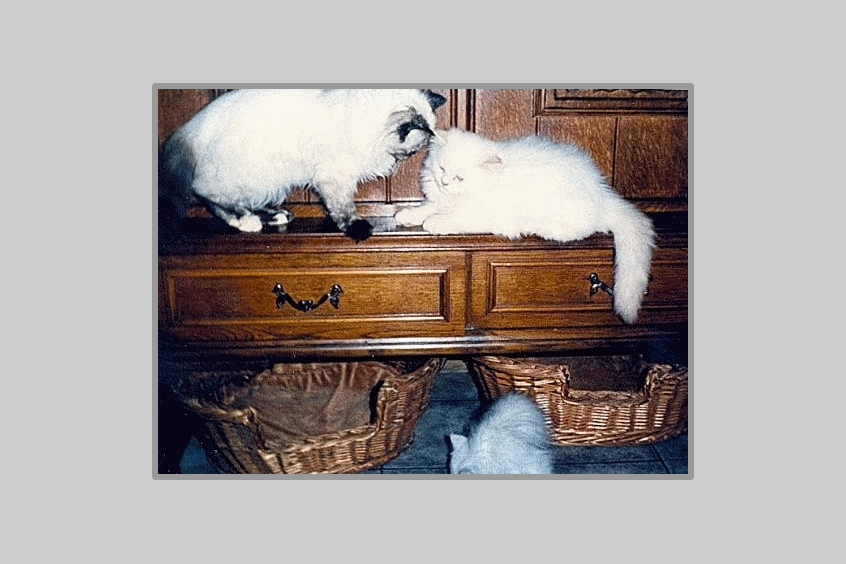 Debby, Chantal en Aladin waren de eersten van onze Cattery. Het waren perzische katten. We wilden graag fokken. Met stambomen en al. We noemden onze Cattery: "Lucinda" en lieten ons registreren. Later kwam Smokey er bij. Maar omdat Aladin en Smokey nog klein waren, lieten wij de poezen ergens dekken. Bij Debby lukte het steeds niet. Maar Chantal hadden wij door een rode kater laten dekken omdat we graag een rode poes wilde houden. Ze kreeg vijf jongen. Tiara, Anouschka, Nikki, Garfield, en Archy. Anouschka hebben we gehouden. Later kwam Casper, een  Shaded Golden en Natascha een tortypoint. En er kwam nog een half-pers bij, een schildpad met wit, die noemden we Sacha. Het was ontzettend leuk om te doen, al moesten we soms 's nachts ons bed uit om jongen bij te voeren die niet genoeg groeiden. Toen Aladin en Smokey opgroeiden en geslachtsrijp werden, kwam er een soort machtsstrijd tussen hen. Ze stonden dreigend tegenover elkaar met hoge rug en haren rechtop. Smokey was niet zo'n zindelijke kat en erg bazig, dus hebben wij hem weg moeten doen. Aladin kon wel goed met Casper overweg. Casper was Aladin gewoon onderdanig. Maar Harrie de huiskat stond aan het hoofd, want hij was er tenslotte het eerst. Alle katten waren hem onderdanig. Dominique (mijn kleindochter) speelde altijd met Casper en kleedde hem aan en lag hem in een poppenledikantje .Hij liet alles toe, de schat. Als hij naar de kattenbak moest, struikelde hij over de jurk die hij aan had, en dan lag Dominique in een deuk van het lachen. We kochten ook nog een creme-point, die heette: "Champagne van Gerritsland" , maar wij noemden hem 'Boris'. Maar bleek een mongool te zijn volgens de dierenarts. Hij keek ook heel dom uit zijn ogen en groeide ook niet, en van de kattenbak had hij  geen kaas gegeten, want hij deed het er gewoon voor. Het bleek door inteelt te komen. We hebben hem bij iemand gebracht, die zulk soort katten opnam. (Ge&Co)