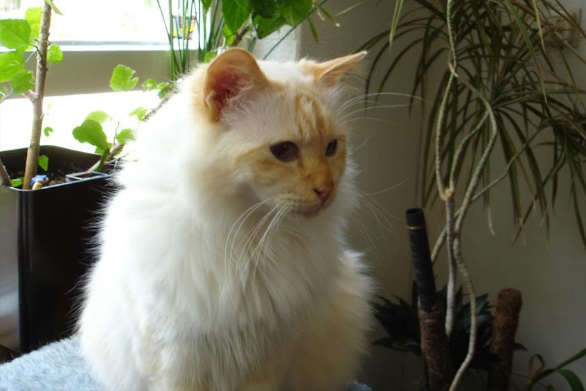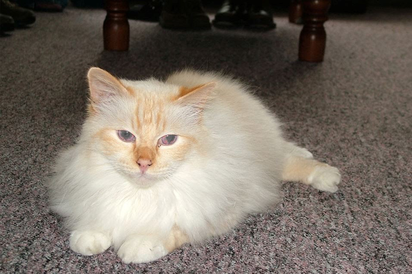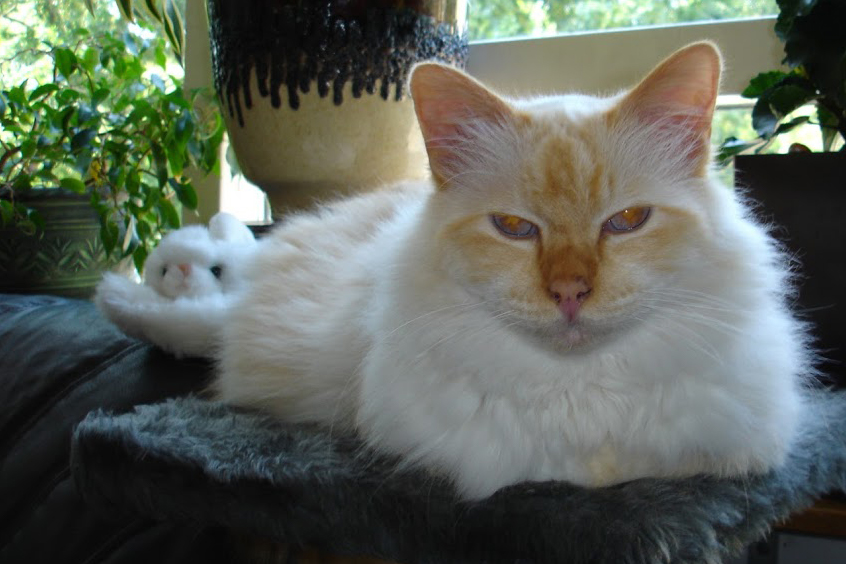 Ik kocht in Lelystad een Heilige Birmaan. Een redpoint. Omdat hij mij qua kleur aan de vorige Aladin deed denken (een Pers) noemde ik hem ook Aladin. Omdat hij als fokkater gebruikt was, had hij heel lang opgesloten gezeten in een kooi. Hij was vrij onhandelbaar, en een kat met gebruiksaanwijzingen. Hij had gewoon liefde en aandacht nodig. En dat kreeg hij en later was hij hartstikke lief en kon ik met hem lezen en schrijven. Nog later kreeg hij plasproblemen, en moest ik hals over kop naar de dierenarts. Daar scheurde zijn blaas en moest hij met spoed geopereerd worden. Het was een kostbare operatie, maar het redde wel zijn leven. Hij is bijna twaalf jaar geworden, en hij kreeg kanker en ik moest hem in laten slapen. Ik mis hem nog altijd. (Ge)