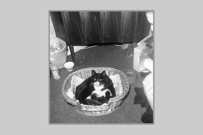Snuitje kwam uit het asiel. Het was een lieve poes, een vrouwtje dus en voor dat wij het wisten lag ze met een nestje onder de kast. Vier zonen en een dochter. Ollie ging naar mijn broer Henk. Snuf naar mijn broer Gerrit en Blacky naar mijn broer Peter. En één naar mijn vader. Dat was een hele leuke cyperse met witte pootjes. Het enige vrouwtje konden we aan de straatstenen niet kwijt en die ging naar de dierenwinkel van Henk Kat, waar hij uit eindelijk ook door iemand gekocht werd. Omdat Snuitje doorlopend aan de diarree was, ging mijn man met hem naar de dierenarts, maar voor de deur ontsnapte hij uit de tas. Mijn man heb samen met de dierenarts nog gezocht maar Snuitje was niet te vinden. Hopelijk heeft ze een goed tehuis gevonden. (Ge)