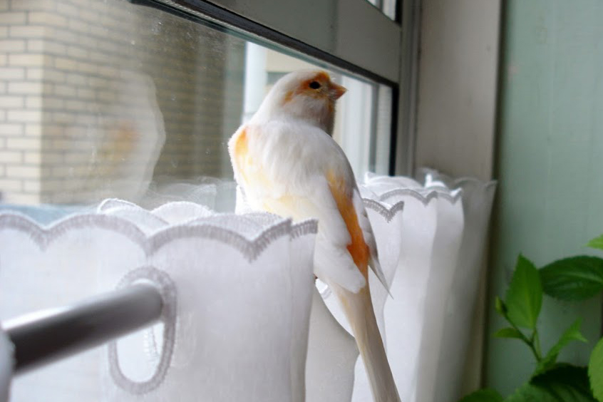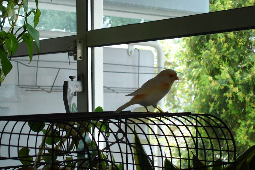Guus was mijn laatste kanarie. Hij was een beetje zalmkleurig en het was een hele leuke vogel, en erg tam. Hij vloog gewoon in de kamer rond als zijn kooi werd schoongemaakt. Hij zong ook mooi. Hij is helaas overleden. Hij ligt begraven in een plantenbak op het balkon van mijn zuster, waar hij op dat moment logeerde. (Ge)